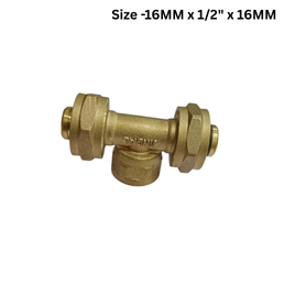 Jindal Female Tee Fittings Brass-Fit -16mm x 1/2″ x 16mm