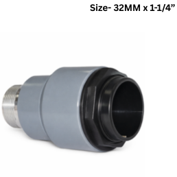 The Quickair Push Fit Male Connector 32mm to 1- 1/4inch is a reliable modular fitting designed for seamless integration in the Quickair aluminum piping network. One side features a push fit connection for direct insertion of 32mm outer diameter aluminum pipe, while the other side provides a 1-1/4inch BSP (British Standard Pipe) male thread for secure attachment to female threaded devices or outlets.