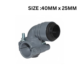 The Quickair Push Fit Male Droplet 40mm to 25mm is a high performance modular fitting from the Quickair aluminum piping system by Canares Engineering Co. This droplet connector is designed with 40mm OD pipe insertion on one side for attaching a 40mm OD aluminum pipe and a 25mm OD push-fit connection (non threaded) on the other side for connecting to a 25mm OD aluminum pipe. It is perfect for creating drop legs, branch lines, or any point where you need to step down from 40mm to 25mm piping without using threaded fittings.