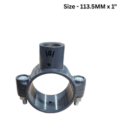 Designed to create a branch drop directly off a 113.5mm outer diameter main aluminum pipe without cutting the line. A hole is drilled in the main pipe, and the saddle clamps around it to provide a 1Inch female threaded outlet at the bottom