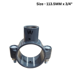 Designed to create a branch drop directly off a 113.5mm outer diameter main aluminum pipe without cutting the line. A hole is drilled in the main pipe, and the saddle clamps around it to provide a 3/4Inch female threaded outlet at the bottom