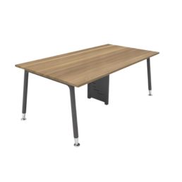 The Heritage Macho is a sleek, modern rectangular meeting table featuring a warm wood-finish tabletop for a contemporary contrast.